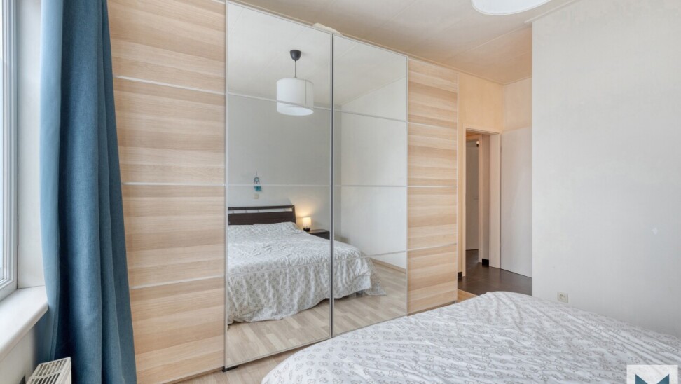 Het appartement werd volledig gerenoveerd in 2010 en bestaat uit een inkomhal, een aparte wc, een praktische badkamer met inloopdouche, twee slaapkamers, een lichtrijke woonkamer met een moderne open keuken en aparte berging/wasplaats. Aansluitend vinden we een terras van 6m² waar het s'avonds fijn vertoeven is.